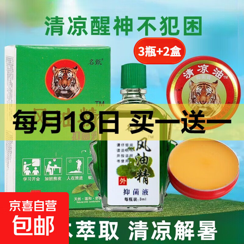 【王牌】风油精正宗老牌提神醒脑清凉防虫止痒防困防晕车清凉油 风油精【3瓶】+清凉油【2盒】