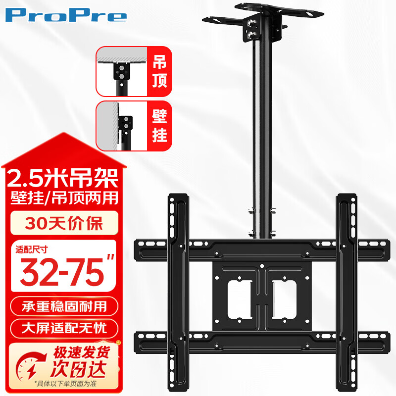 ProPre 2.5米电视吊架液晶电视机旋转上下伸缩吊架电视吊架天花板吊顶架挂架(32-75英寸)