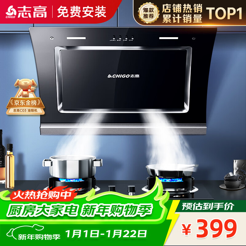 志高(CHIGO)国补油烟机 家用大吸力侧吸式吸油烟机小户型脱排抽油烟机一级能效C03 国家补贴立减20%可配燃气灶