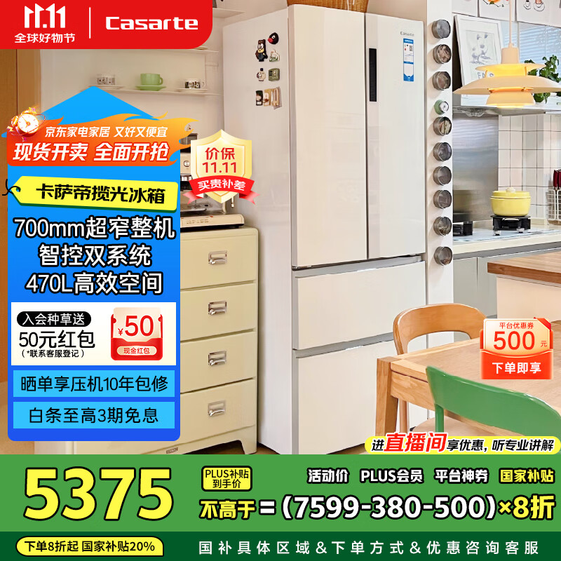 卡萨帝(Casarte)揽光冰箱星空版470升【星悦】自由嵌入式法式双系统国家补贴20%一级能效冰箱BCD-470WLCFDM9WKU1