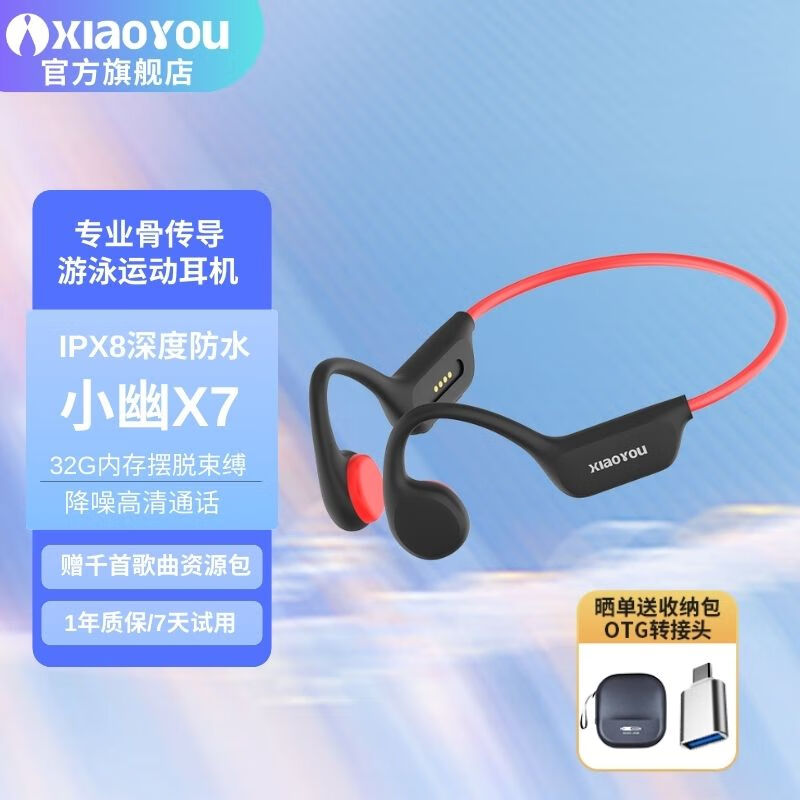 小幽骨传导x7蓝牙耳机游泳耳机跑步降噪8级防水运动专业骨传感不入耳挂耳式自带32G内存