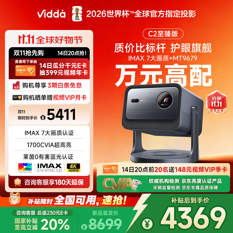 Vidda C2至臻版 海信4K超高清三色激光云台投影仪家用100吋家庭影院电视(莱茵0有害蓝光)国家补贴