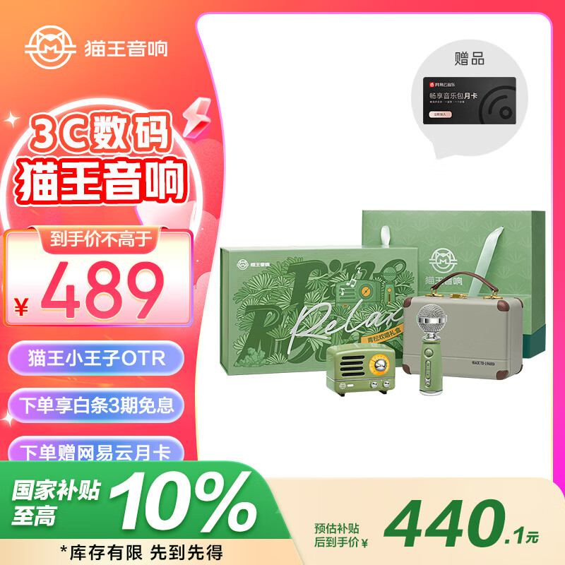 猫王收音机猫王音响猫王小王子OTR欢唱版便携式蓝牙音箱K歌音响麦克风高保真发烧级礼物【青松欢唱礼盒】