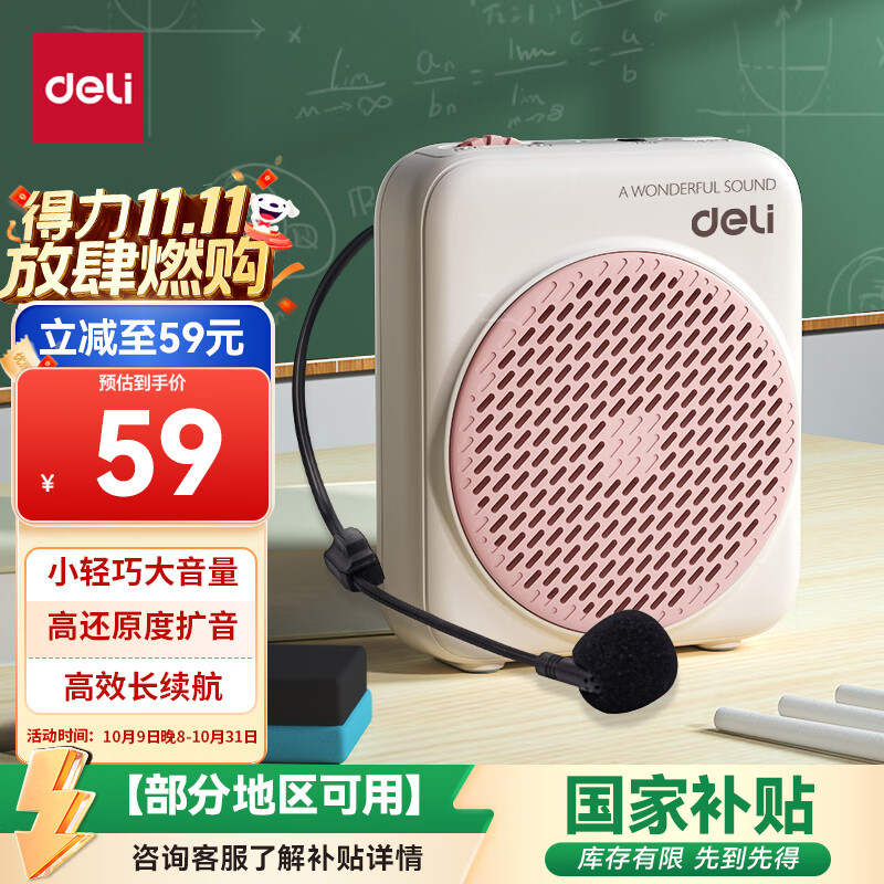 得力(deli)小蜜蜂扩音器老师专用喇叭腰挂教学上课讲课麦克风导游便携式喊话器教学讲课神器生日礼物粉色