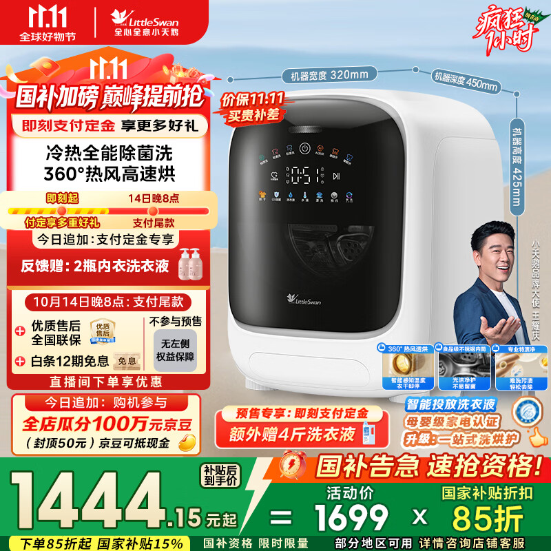 小天鹅(LittleSwan)内衣洗衣机全自动 懒人洗衣机小型迷你 带烘干洗烘一体 高速柔烘 除菌 极地舱 TND10VDIW0E
