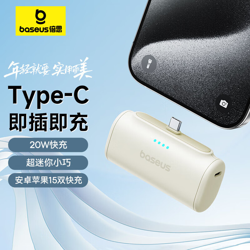 倍思 【国家3C安全认证】胶囊充电宝20W快充Type-C接口可上飞机移动电源适用于苹果华为安卓手机