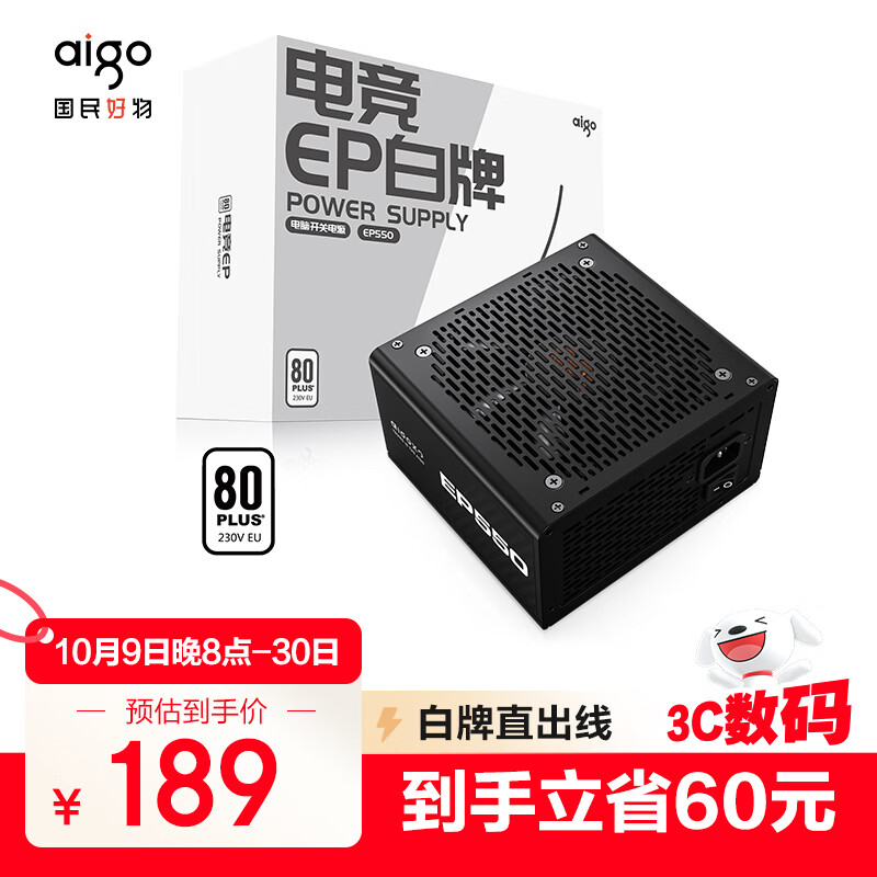 爱国者(aigo)额定550W EP550 黑色 电脑主机电源 (80Plus白牌/主动式PFC/支持背线/大单路12V)