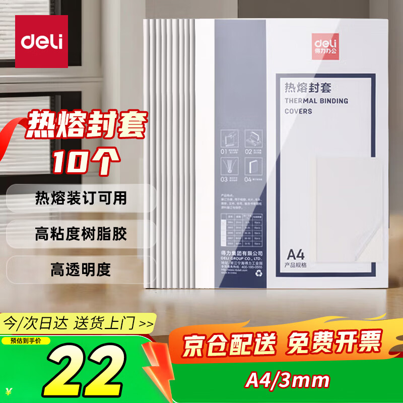 得力(deli)3865 热熔封套 热熔装订机专用装订封皮 A4/3mm(10个装)