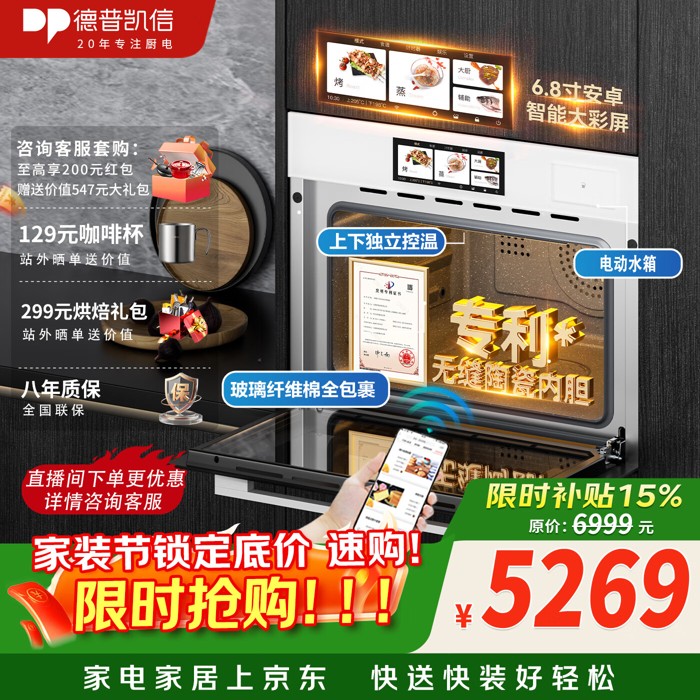 德普凯信德普TD55PRO无缝内胆蒸烤一体机一体拉伸全陶瓷内胆蒸烤箱APP智控自动烹饪高清彩屏蒸烤炸炖一体机 【无缝胆】【蒸烤同烹】磨砂白TD55M2PLUS