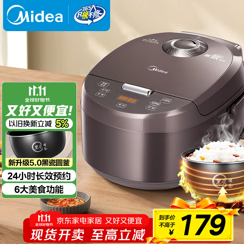 美的(Midea)电饭煲智能家用4L电饭锅新升级5.0黑瓷聚能釜24小时预约香甜Q弹饭微压米饭锅AFB4058R以旧换新