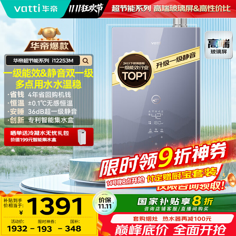 华帝(VATTI)超节能16升燃气热水器天然气一级能效【国家补贴20%】一级节能水伺服免滴水 i12253M-16以旧换新