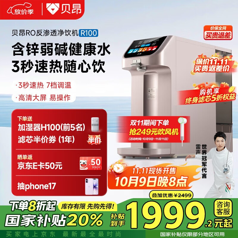 贝昂净饮机台式净水器100G反渗透即热直饮免安装家用即热式直饮机R100 【国家补贴】