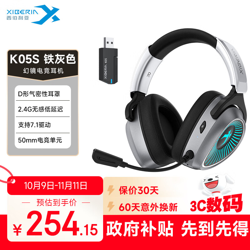 西伯利亚(XIBERIA)【全网热销】K05S无线2.4G蓝牙游戏耳机头戴式电竞专用电脑吃鸡耳机铁灰色 适配三角洲行动