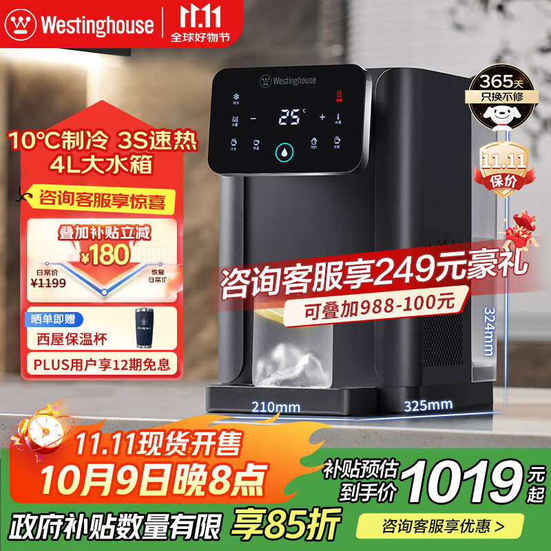 西屋(Westinghouse)即热式饮水机小型饮水机家用 制冷速热办公台式客厅即热饮水机 W4S冷热冲泡奶机水壶【国家补贴】