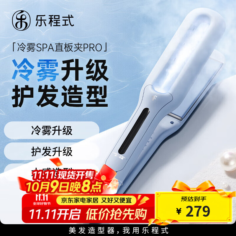 乐程式冷雾SPA蒸汽直板夹负离子夹板补水不伤发卷直两用卷发棒直发神器直发棒拉直板加宽夹板节日礼物 蓝