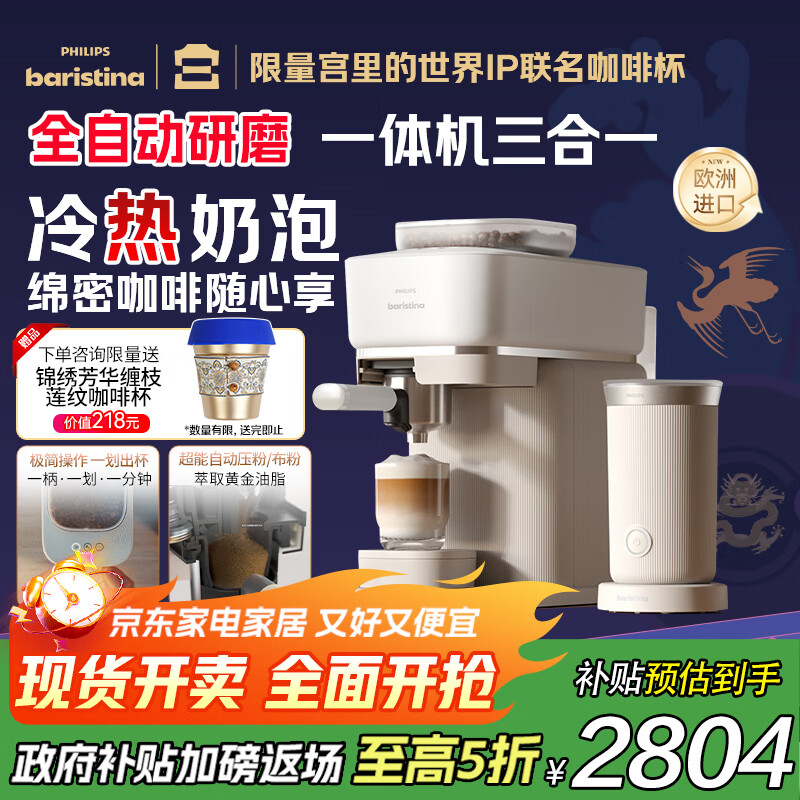 飞利浦(PHILIPS)【政府补贴】Baristina新型意式美式咖啡机 全自动研磨一体机家用咖啡机BAR系列奶咖版