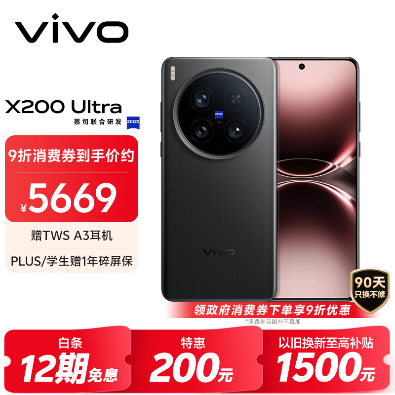 vivo X200 Ultra 12GB+256GB 黑Ka 蔡司三大定焦大师镜头 蓝图自研影像双芯 V单相机 AI手机