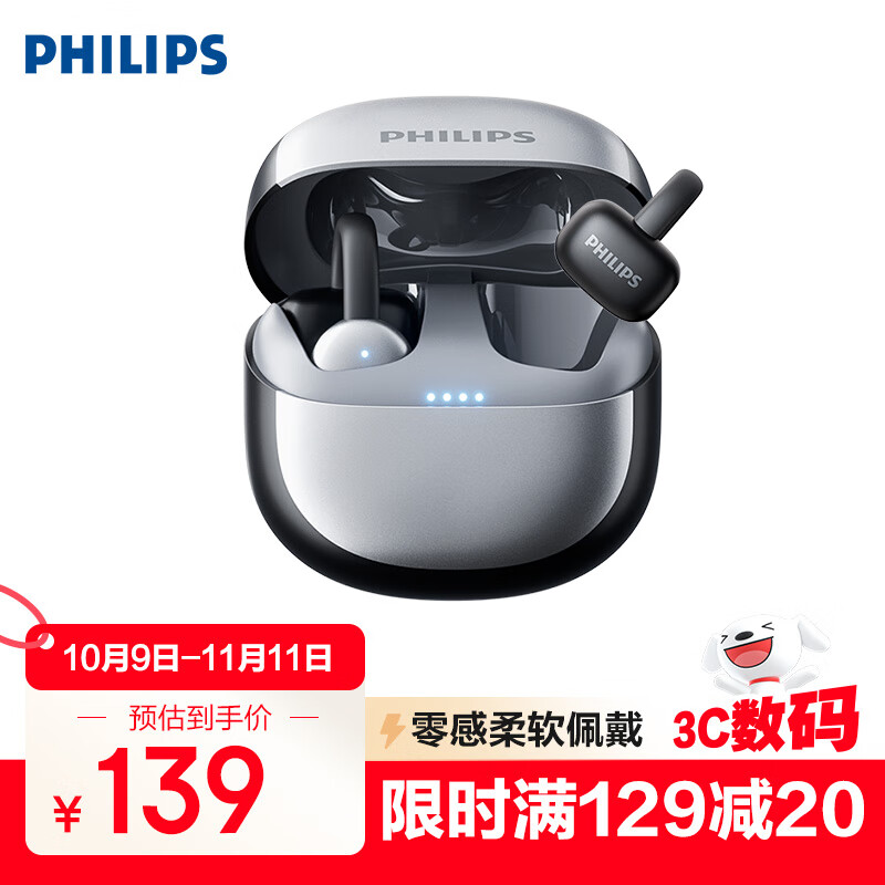 飞利浦(PHILIPS)蓝牙耳机耳夹式无线开放挂耳式骨传导概念运动跑步通话降噪适用华为苹果 TAT4469 黑 双十一活动