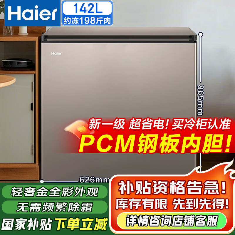 海尔(Haier)142升冰柜无需频繁除霜钢板内胆减霜冷柜家用冷冻柜小型冷藏柜保鲜柜BC/BD-142GHPCA国家补贴立减