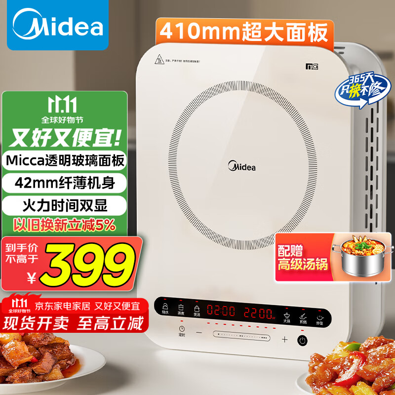 美的(Midea)电磁炉电陶炉 家用2200W大功率 恒匀火加热 电磁灶火锅爆炒定时电磁炉套装政府补贴 C22-Micca705