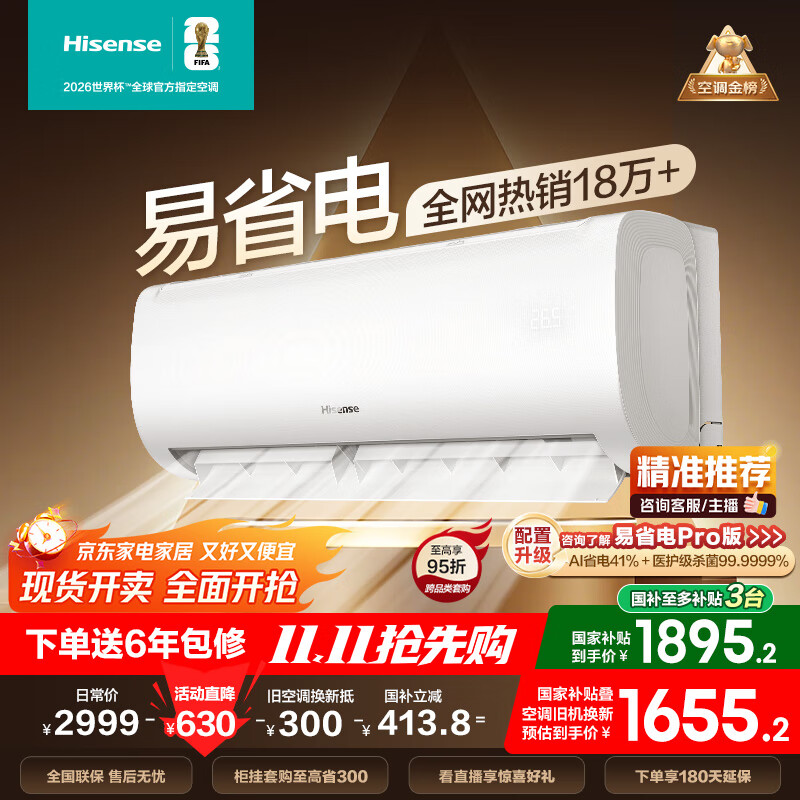 海信(Hisense)空调大1.5匹 易省电E370 AI省电 速冷热 仿真自然风 新一级国家补贴20%空调挂机KFR-35GW/E370-X1
