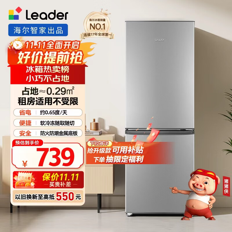 统帅(Leader)海尔出品180升两门二门双门家用小型电冰箱超薄宿舍租房节能小冰箱BCD-180LLC2E0C9