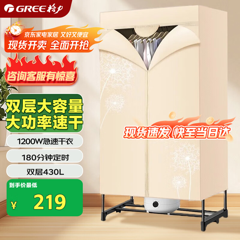 格力(GREE)【1200W衣柜式大容量】干衣机烘干机家用布罩类小型烘衣机双层烘干衣物护理机20斤承重GN-12X60
