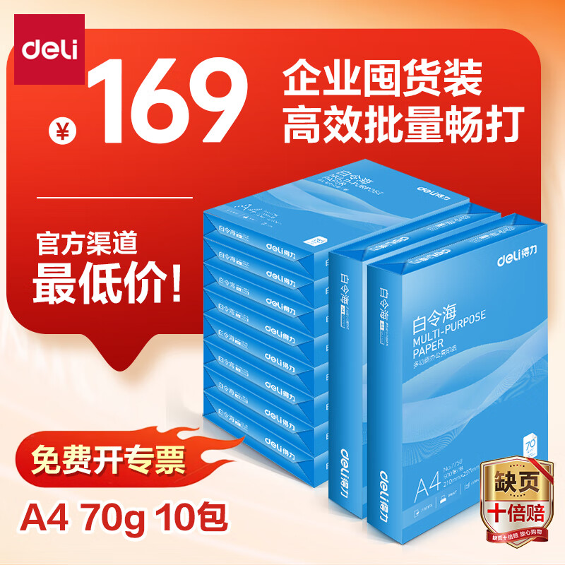 得力(deli)白令海A4打印纸 70g500张*10包一箱 双面高性价比复印纸 整箱5000张 7755【经济热销】