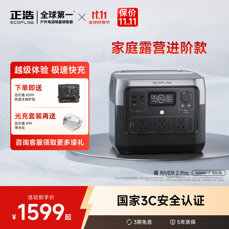 ECOFLOW正浩睿 RIVER 2 Pro 【70分钟闪充】移动电源户外电源220V 800W大容量自驾车载露营便携充电宝电池