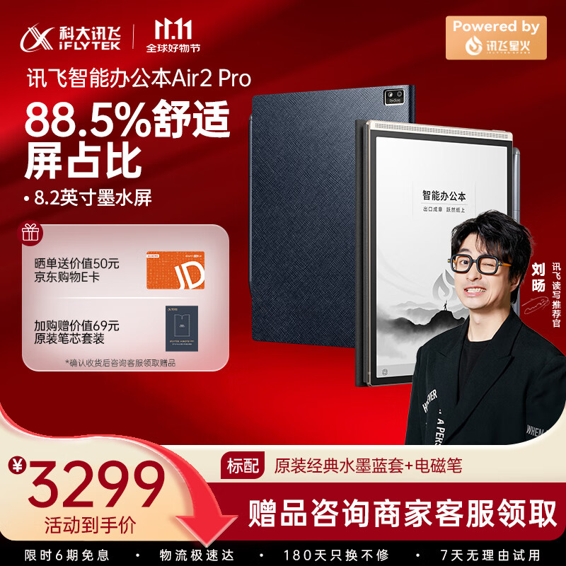 科大讯飞智能办公本Air 2 Pro星光金-水墨蓝 8.2英寸电子书墨水屏平板电脑 手写笔记本电纸书 语音转文字