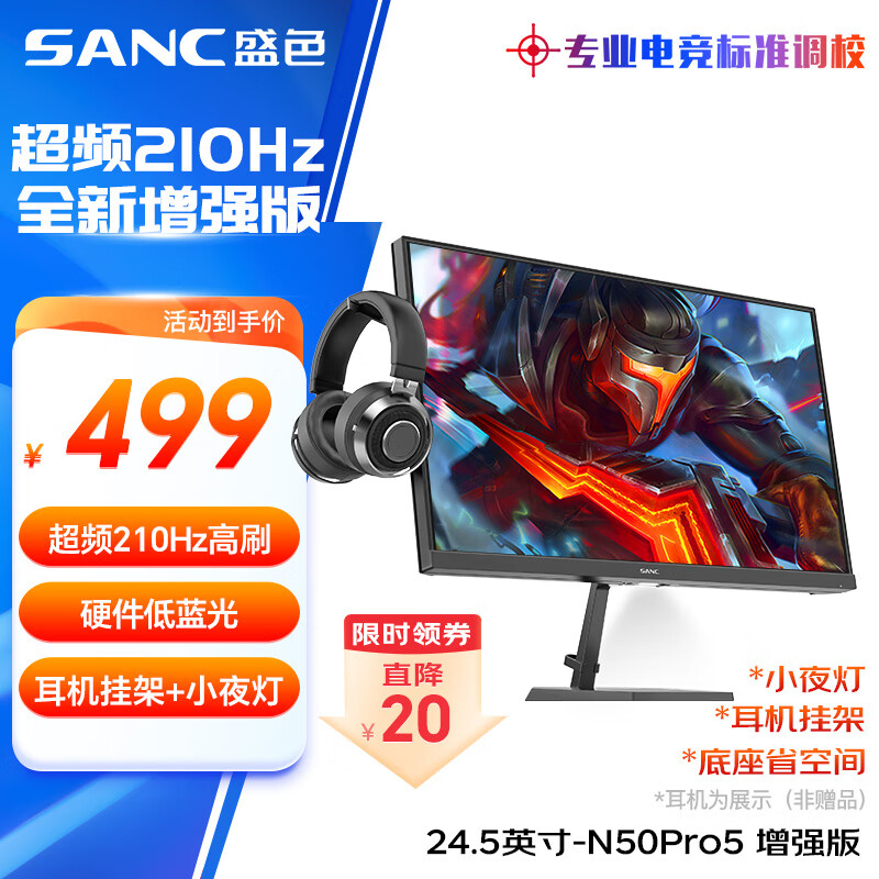 SANC盛色24.5英寸210Hz电竞显示器FastIPS 原生200Hz HDR400亮度 硬件低蓝光 电脑屏幕 N50Pro5增强版