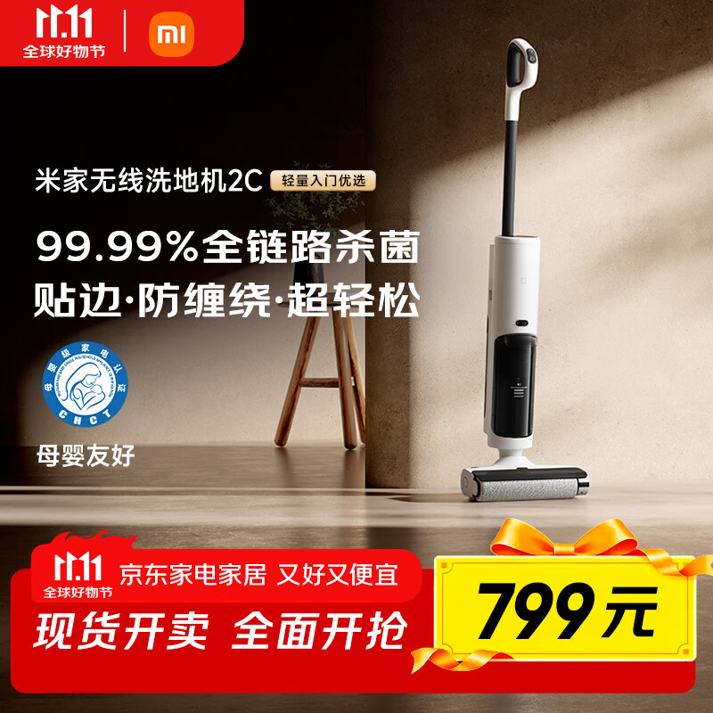 米家小米无线洗地机2C 家用吸拖洗一体 实时电解水杀菌 沿边扫拖自清洁 手持吸尘滚刷防缠绕