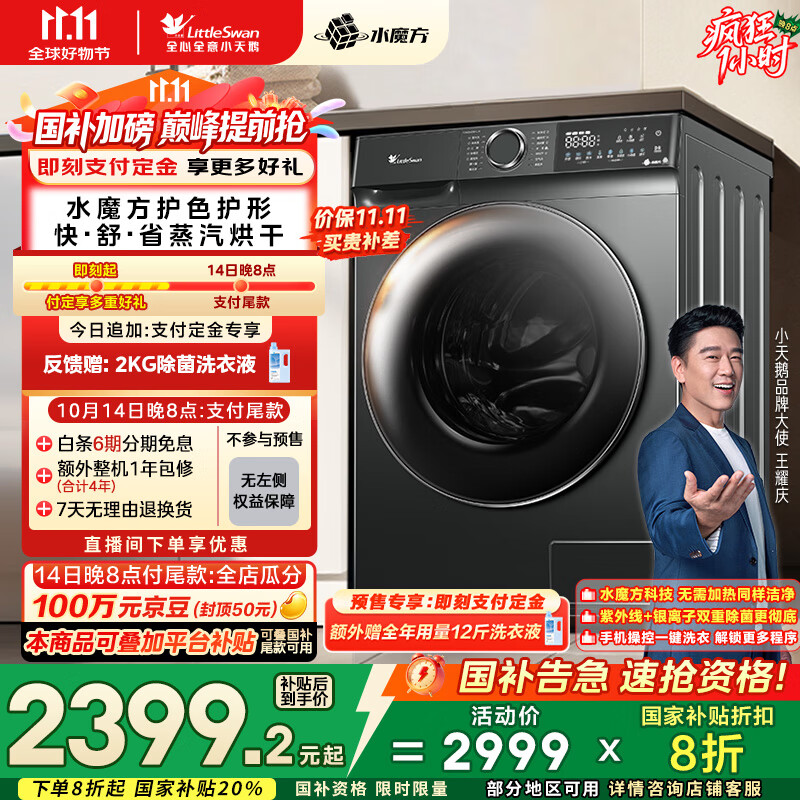 小天鹅(LittleSwan)滚筒洗衣机全自动家用 洗烘一体洗衣机 水魔方【TD100V618PLUS】10公斤 家电国家补贴20% 以旧换新