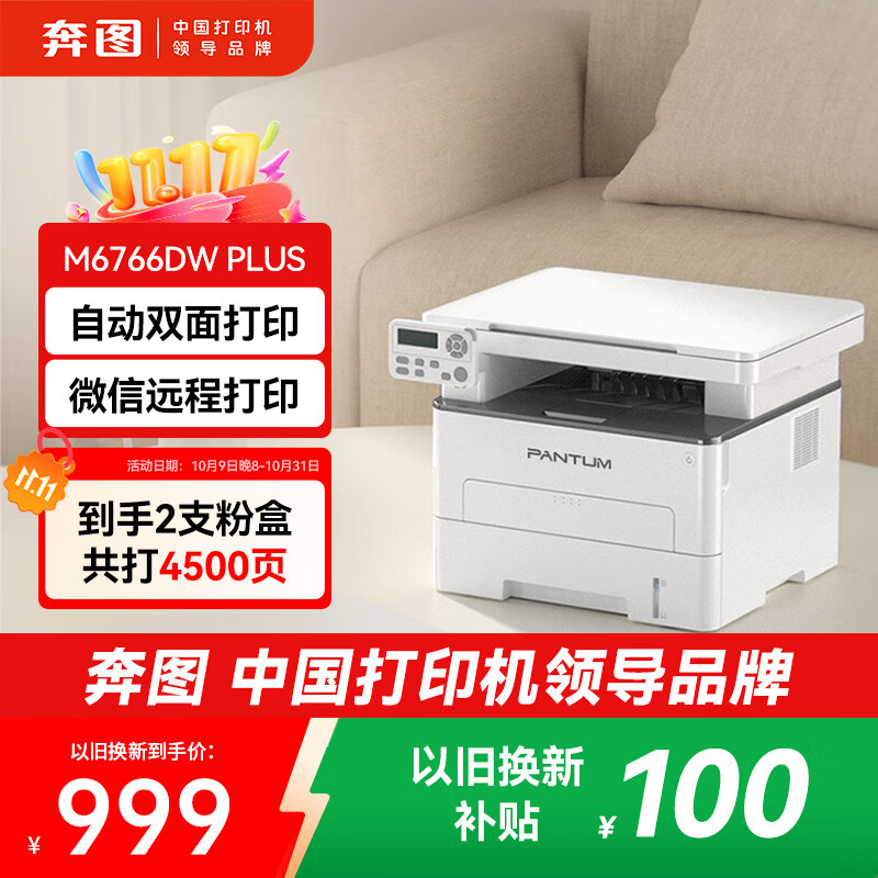 奔图(PANTUM)M6766DW Plus激光打印机家用办公 自动双面打印机复印扫描一体机 手机连接畅打成本7分钱
