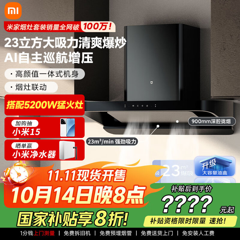 米家小米智能欧式吸油烟机S2 大吸力顶吸抽油烟机烟灶国家补贴以旧换新天然气燃气灶MJ01C【套装商品】