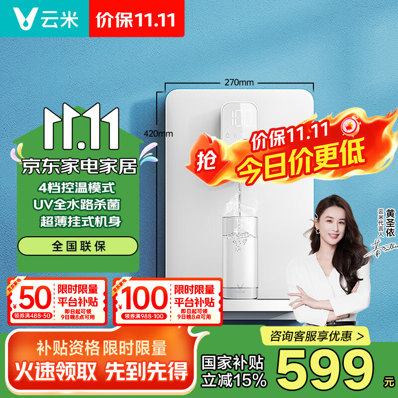 云米(VIOMI)管线机壁挂式 家用直饮机 加热饮水机 超薄壁挂 一键即热 厨下净水器搭档 无内胆净饮机 MG2-B