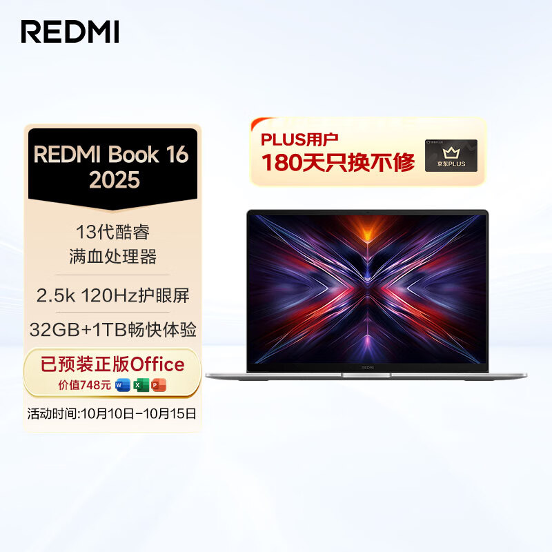 小米笔记本电脑 红米REDMI Book 16 2025轻薄本高性能13代酷睿 32G 1T新品上市