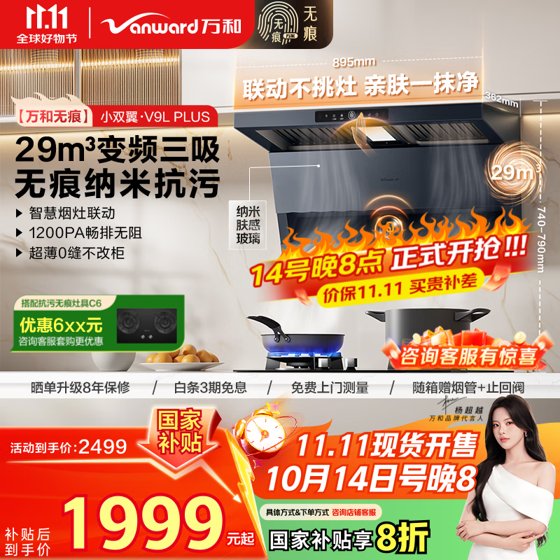 万和(Vanward)【无痕V9LPlus·纳米抗污】蓝色顶侧双吸抽排油烟机29风量大吸力联动配燃气灶以旧换新国家补贴20%