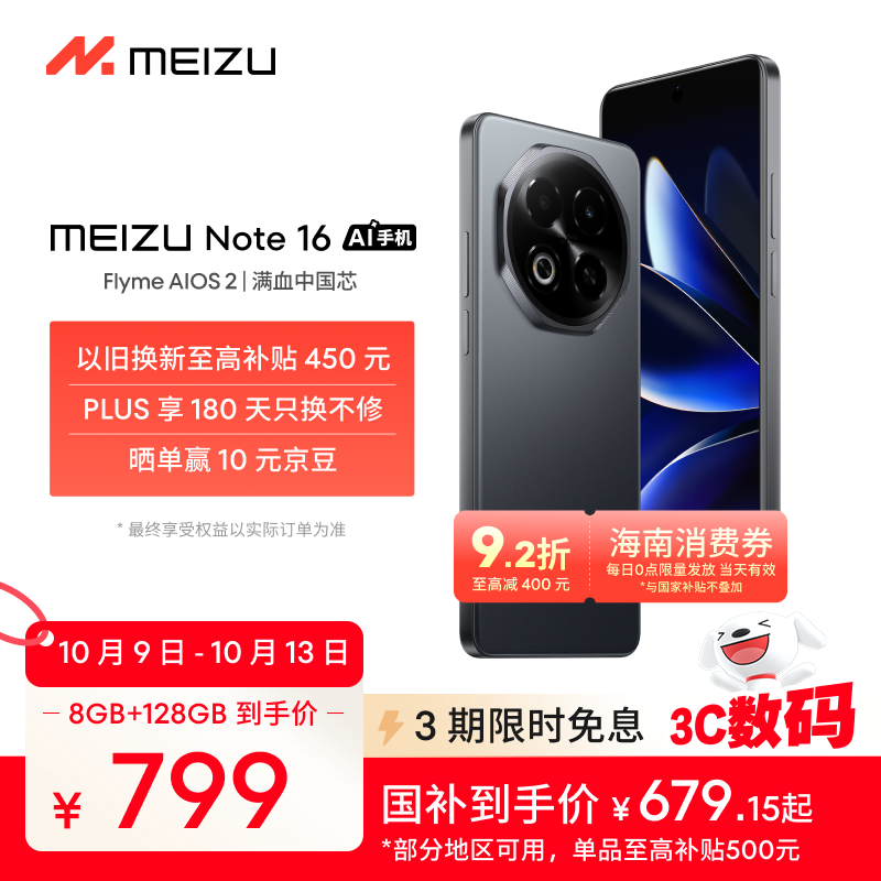 魅族(MEIZU)Note 16 AI手机 8GB+128GB 磐石黑 满血中国芯 6600mAh大电池 120Hz
