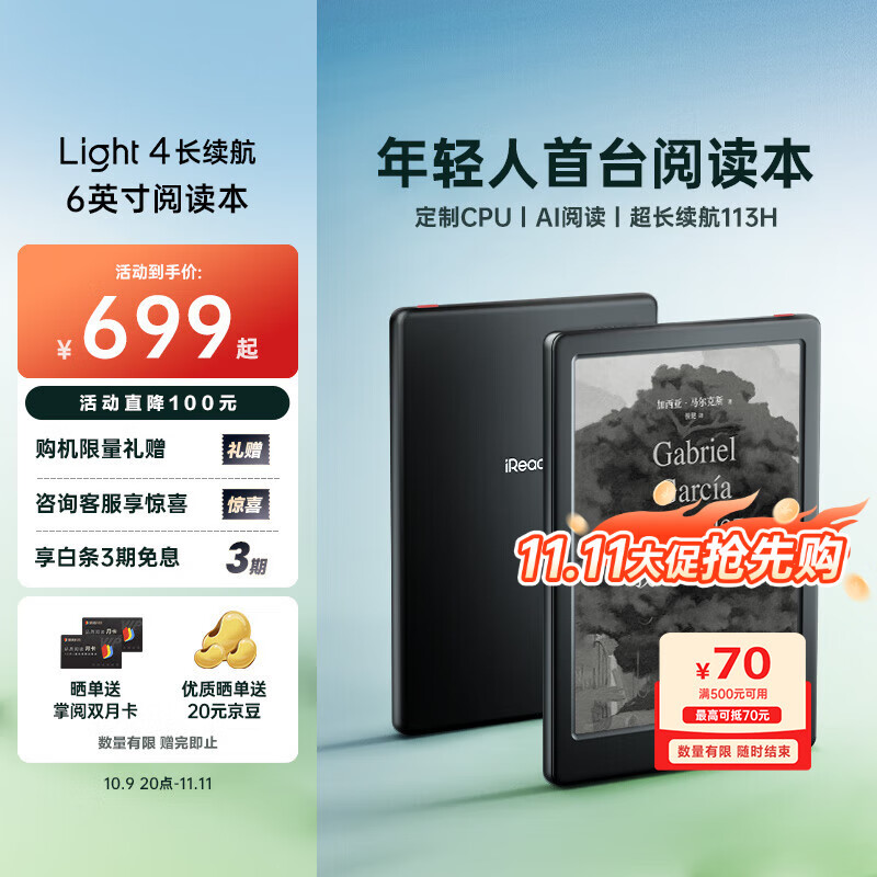 掌阅(iReader)Light4 长续航 6英寸智能阅读本 电子书阅读器 墨水屏电纸书 平板电脑学习看漫 便携笔记本 沉墨