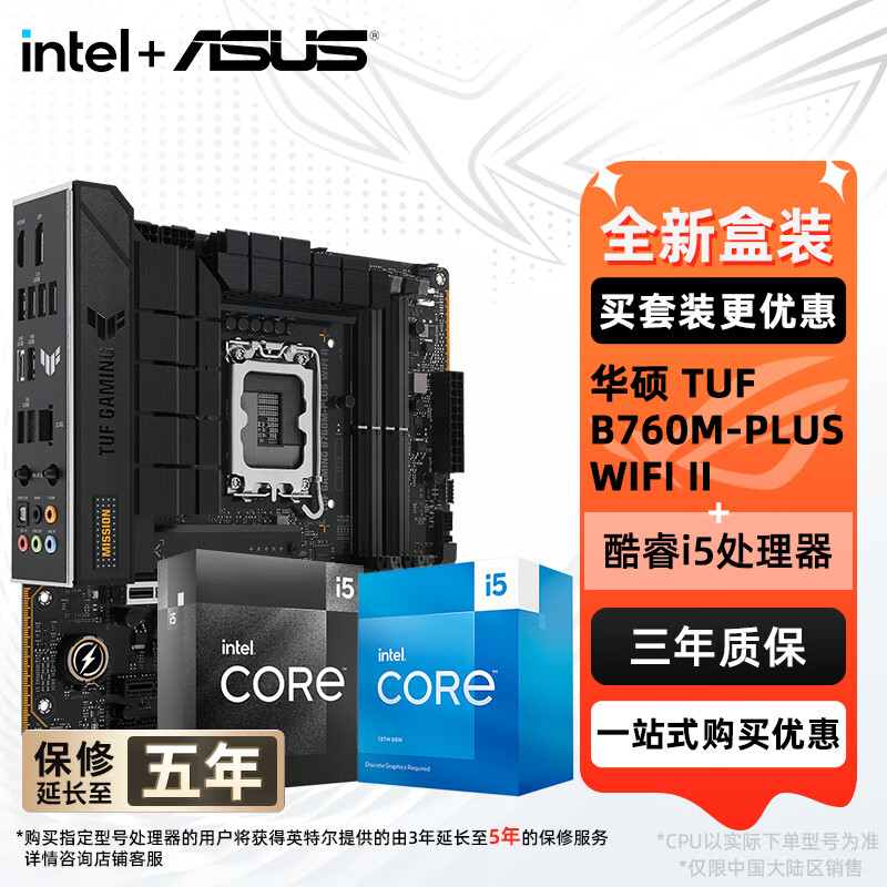 华硕(ASUS)B760 主板套装 英特尔13代 i5 13490F/13600KF/14400F/14600KF 板U套装 主板CPU套装 华硕 TUF B760M-PLUS WIFI II i5 14600KF