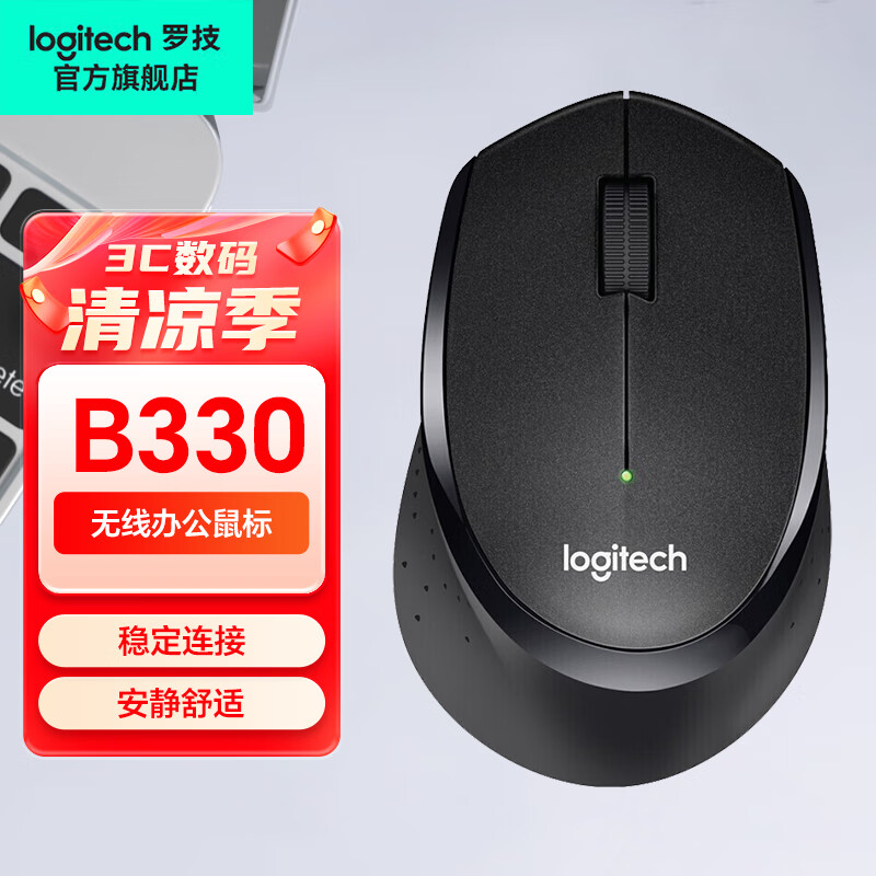 罗技(Logitech)M330无线鼠标静音办公鼠标办公鼠标右手鼠标轻音适应咖啡厅图书馆寝室 便携带2.4G接收器 B330 (M330)黑色