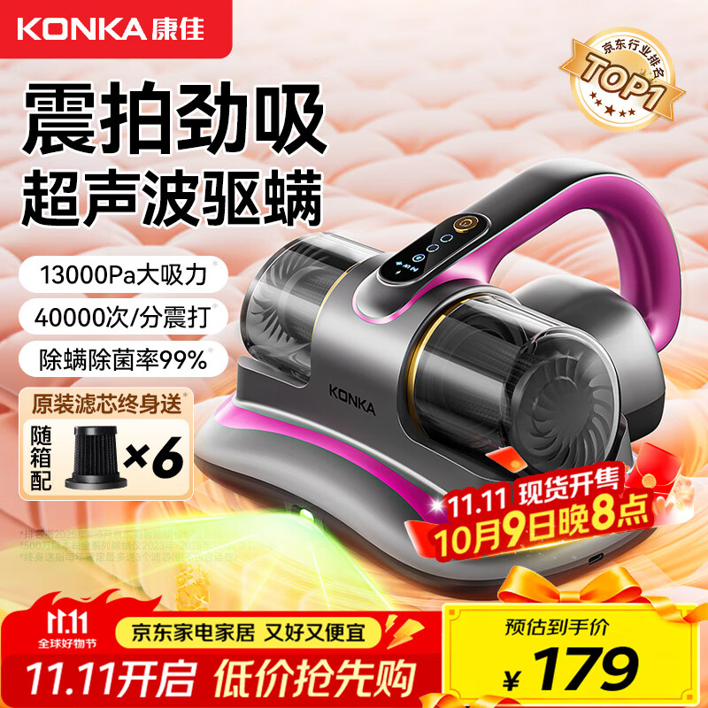 KONKA康佳除螨仪床上吸尘器沙发紫外线杀菌除螨虫无线大吸力床宝吸尘除螨一体机器 负离子净化丨99%除螨率丨紫色