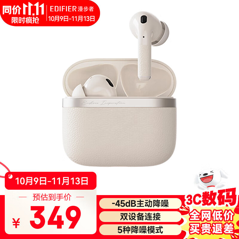漫步者(EDIFIER)【新款材质专利】花再Evo Pro真无线主动降噪蓝牙耳机无线入耳式低延迟游戏耳麦air节日礼物 贝母白+透明保护套