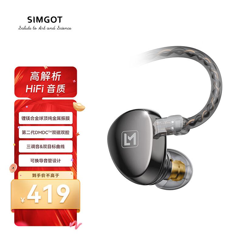 兴戈(SIMGOT)EA500LM入耳式HiFi有线耳机发烧级高解析游戏音乐耳塞 镜面灰