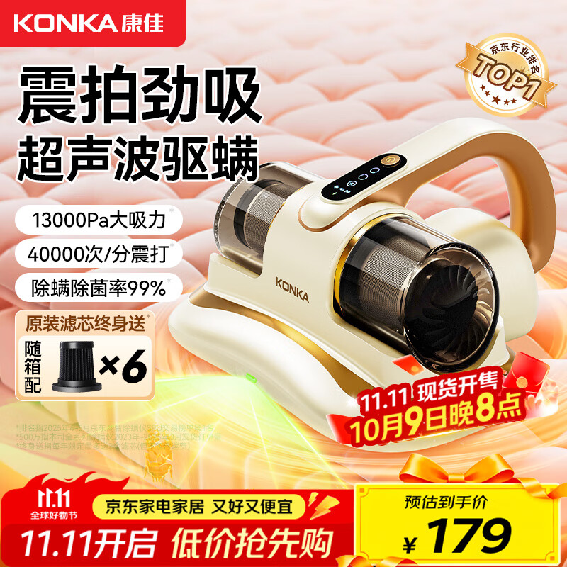 KONKA康佳除螨仪床上吸尘器沙发紫外线杀菌除螨虫无线大吸力床宝吸尘除螨一体机器 负离子净化丨99%除螨率丨金色