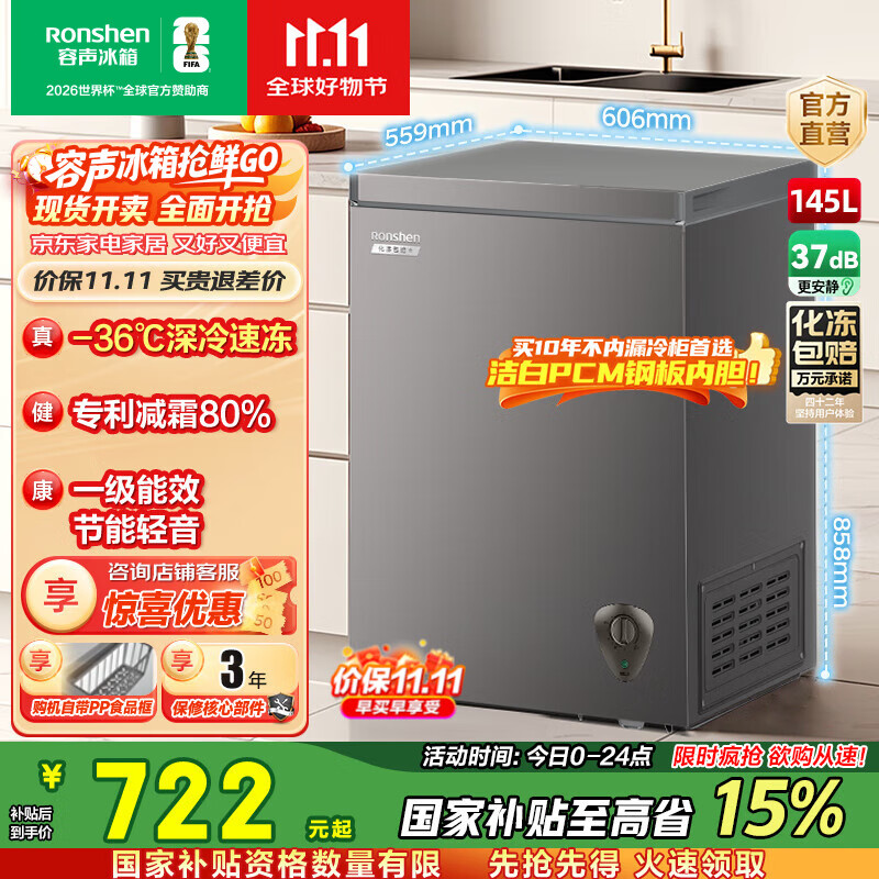 容声145升立式单温柜顶开门冰柜一级能效低噪家用商用冷藏冷冻转化冷柜 BD/BC-145ZMSA 以旧换新 伯雅钢 145L