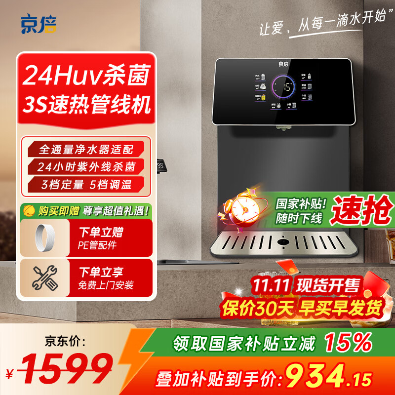 京倍速热管线机家用净水器伴侣秒速加热温度记忆智能触控定量出水多档调温壁挂式饮水机净饮机