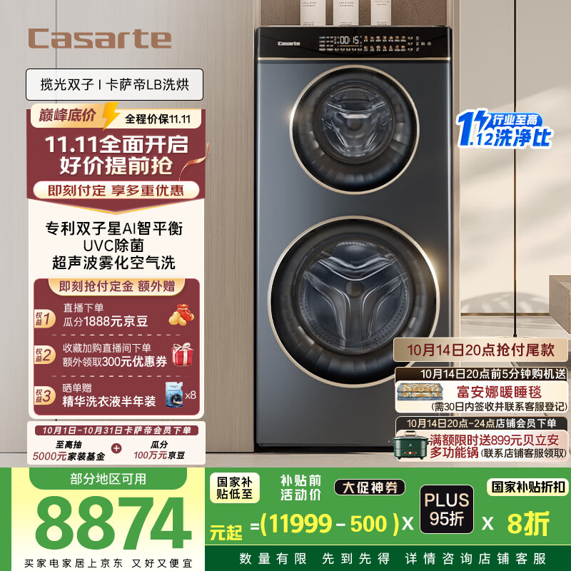 卡萨帝(Casarte)揽光双子LB分区洗烘 滚筒懒人洗衣机全自动14公斤双筒 HB14LDALBU1 家电补贴20%