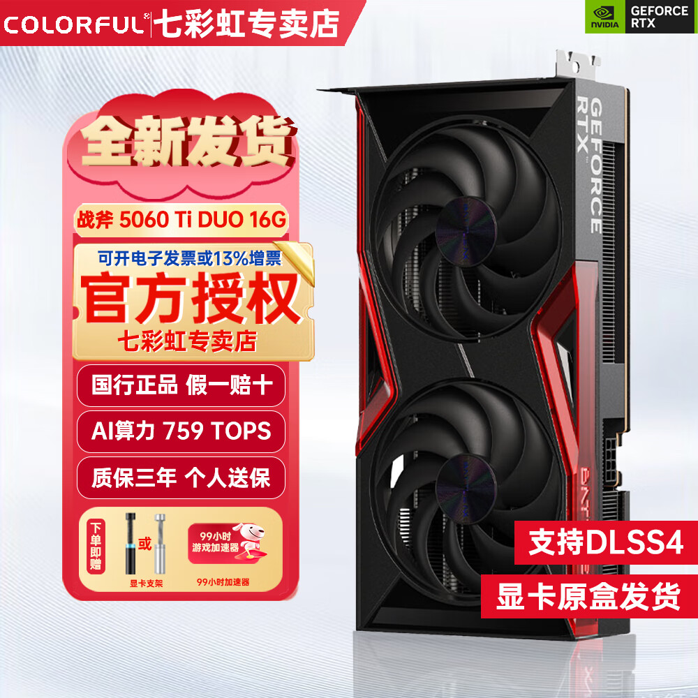 七彩虹(Colorful)七彩虹 RTX 5060Ti 8GB/16GB GDDR7 台式机电脑独立显卡 电竞游戏设计渲染 七彩虹战斧 5060Ti DUO 16GB